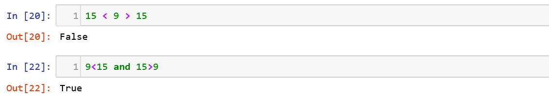 The comparison operators that are available for manipulation are “==”, “!=”, “<>”, “≤”, “≥”, “>” and “<”. You can do a multiple comparisons in a single line using Boolean operators.![]()
