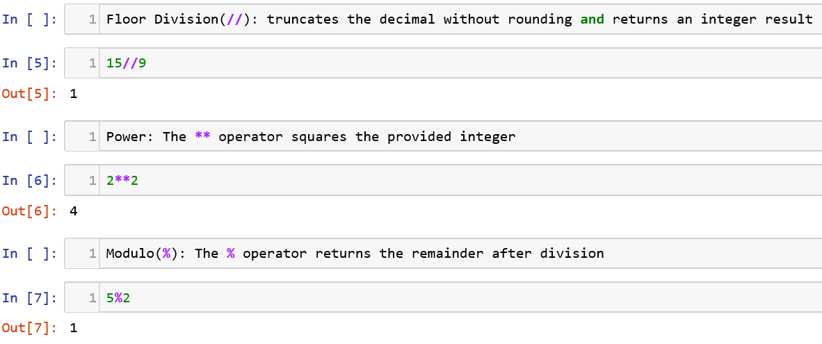 We are all familiar with the basic arithmetic operators (+,-,*,/) so let us dive into the other type of operators that can be used.