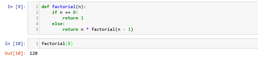 A recursive function is the one which calls itself inside its own definition (return statement calls the factorial function). In this case, the factorial function executes until the value of n equals 0.![]()