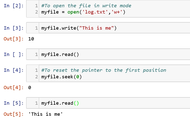 File objects can be used by Python to interact with the files in your computer. In order to understand this, let us see now see first open a file in write mode, write a line to it and try to read the file.