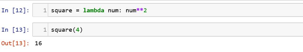 These expressions allow us to create “anonymous” functions that are similar to the standard function definition. It is considered to be one of the most useful tools in Python since it allows us to create ad-hoc functions. For eg, let us take a square function declaration:![]()
