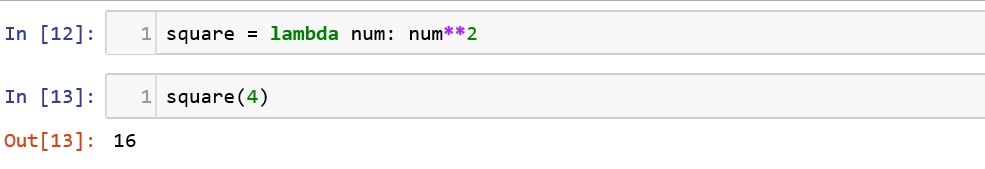 These expressions allow us to create “anonymous” functions that are similar to the standard function definition. It is considered to be one of the most useful tools in Python since it allows us to create ad-hoc functions. For eg, let us take a square function declaration: