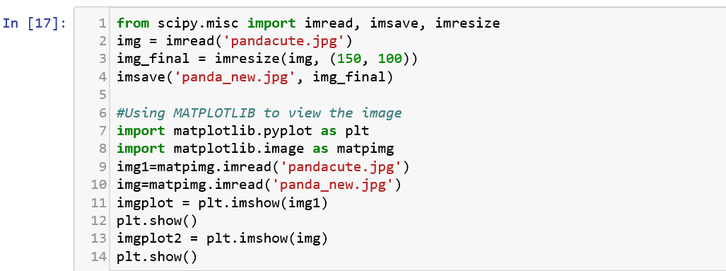 This 2D Python library is the most widely used visualization tool because of its ability to generate histograms, charts and plots with very few lines of code. It can basically help you analyze the data through visual aids. This can be understood better if we try to visualize an example. Let us try to display the above images that we read and saved in Scipy.